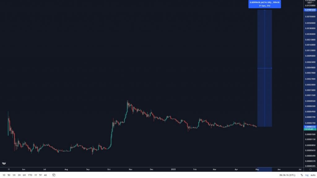 رمز ارز شیبا اینو (SHIB) نیز در زمان نوشته شدن این مطلب در حدود قیمت ۰٫۰۰۰۰۲۲۳۲ دلار معامله میشود و برای رسیدن به قیمت ۰٫۰۱ دلار به رشد سرسامآور ۴۴۷۷۴ درصدی نیاز دارد. بیشترین درصد سودی که شیبا اینو قبلا داشته حدود ۱۲ هزار درصد در عرض ۶ ماه بوده است. بنابراین بسیار نامحتمل به نظر میرسد که این اتفاق به این زودیها رخ دهد.